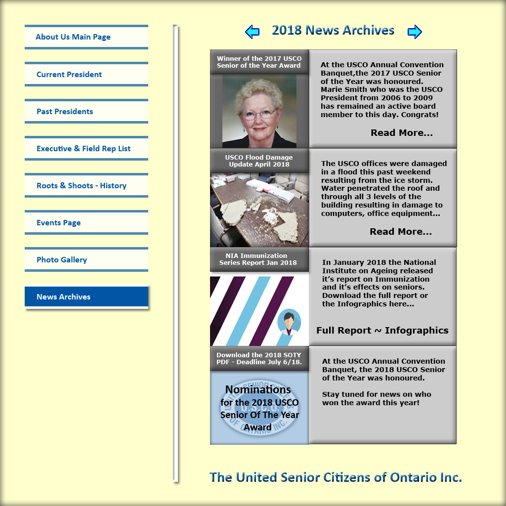 About Us Main Page 2015 - 2016 Executive & Field Rep List Our Current President Page USCO Past Presidents Roots & Shoots Page - USCO History USCO Events Page USCO Photo Gallery USCO News Archives Previous 2017 USCO Senoir of the Year Marie Smith USCO Flood Damage Update Full Report Infographics Next