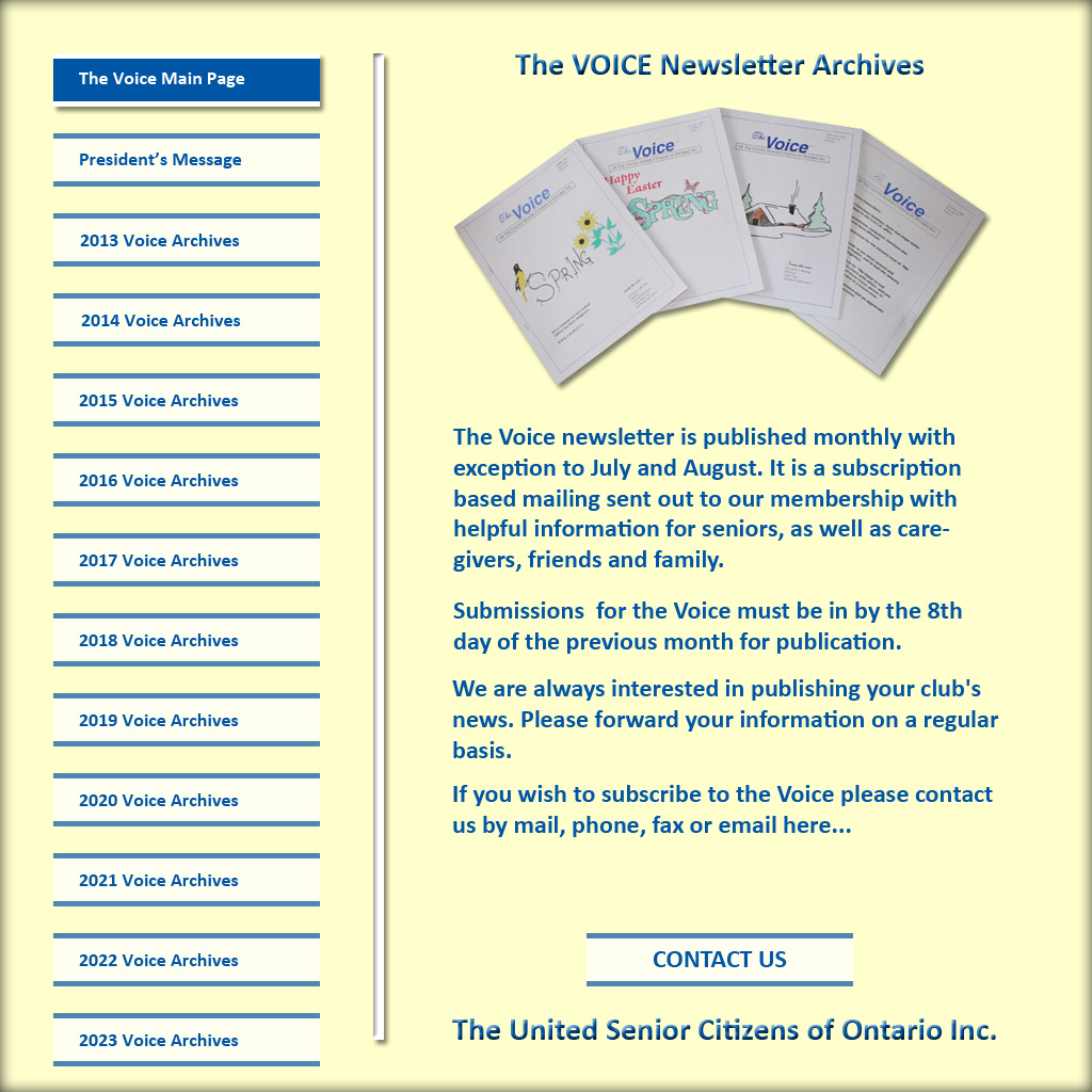 Click here for contact information The Voice Main Page Links to the 2014 President's message  archives Read the latest President's message here Links to the 2013 President's message  archives Links to the 2015 President's message  archives Links to the 2016 President's message  archives Links to the 2017 President's message  archives Links to the 2018 President's message  archives Links to the 2019 President's message  archives Links to the 2020 President's message  archives Links to the 2021 President's message  archives Links to the 2022 President's message  archives Links to the 2023 President's message  archives